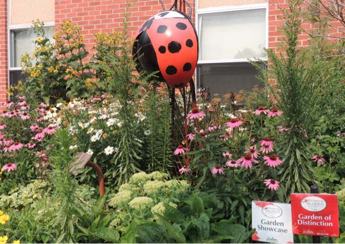A few years later another graduating Grade 8 class agreed to fundraise with Gail to design and commission a piece of neighourhood art to acknowledge the efforts of a member of the community who was instrumental in the school garden design and maintenance, and who died very young from breast cancer. The woman’s daughter designed a ladybug crawling up a piece of grass. A metal artist recreated Rosie the Ladybug with repurposed metal including the round bottom of an old BBQ to make the ladybug’s body. This beautiful piece of art is over six feet tall and proudly stands in the middle of the school garden greeting everyone as they enter.